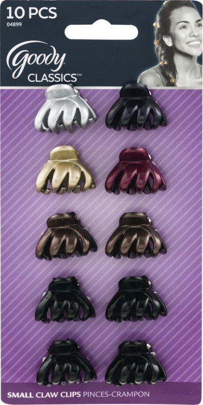 Secure your hairstyle with CLSSC METALC MIN SPDR CLP. This pack of 10 metallic spider clips offers a firm grip and a stylish touch to any look. Ideal for all hair types, these clips are perfect for creating elegant updos or simply keeping hair out of your face.