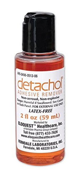 Detachol Adhesive Remover is a gentle and effective solution for removing medical adhesives and tapes. This 2oz bottle provides a non-irritating formula that easily dissolves adhesive residue, making it ideal for sensitive skin. Perfect for use in healthcare settings or at home, it helps maintain skin integrity and comfort.