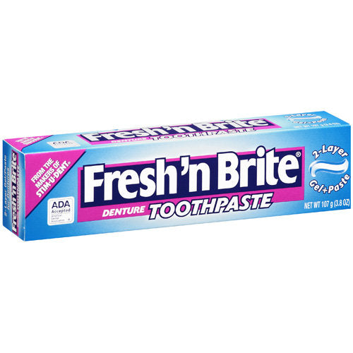 Fresh N Brite Denture Paste in Mint is a gentle yet effective cleaner for dentures. The 3.8oz paste removes stains and odors, leaving dentures fresh and bright. Its minty formula ensures a clean and pleasant taste, making it a must-have for denture wearers seeking daily freshness.