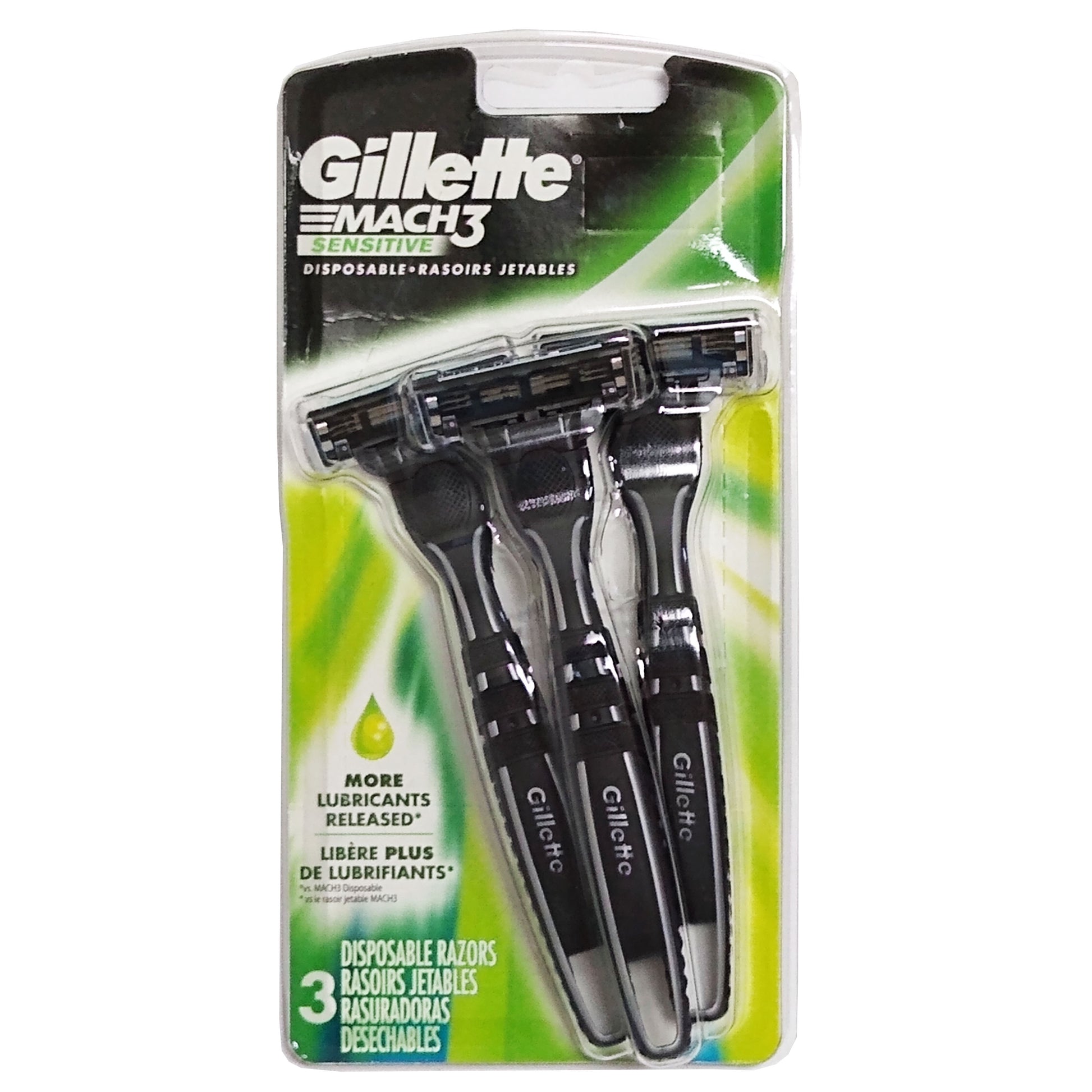 Gillette Mach3 Sensitive Men's Disposable Razors, 3 Ct., 1 Pack Each, By P&G: