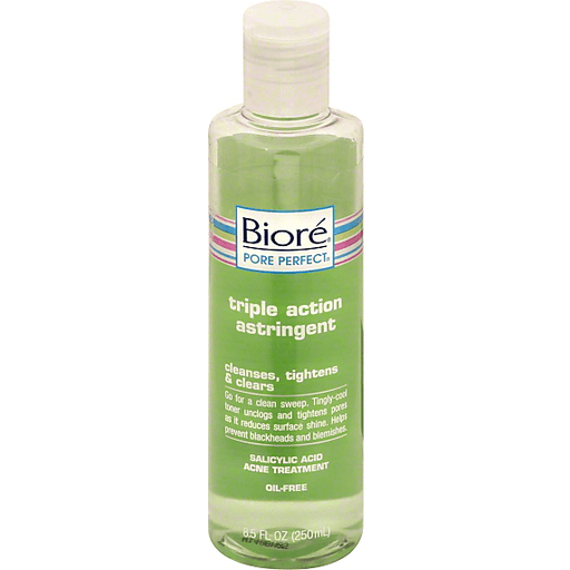 Biore Triple Action Astringent offers a powerful solution for oily and acne-prone skin. The 8.5oz bottle contains a formula that cleanses, tightens pores, and controls oil, helping to prevent breakouts. Ideal for daily use, it leaves your skin feeling fresh and revitalized, promoting a clearer and healthier complexion.