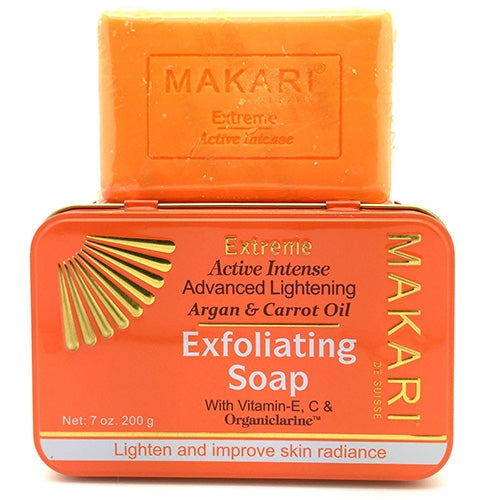 Makari Extreme Carrot & Argan Soap is a nourishing and brightening soap for your skin. The 200g (7oz) bar contains carrot oil and argan oil, providing deep hydration and even skin tone. Ideal for daily use, it helps reduce the appearance of dark spots and blemishes, leaving your skin smooth and radiant.