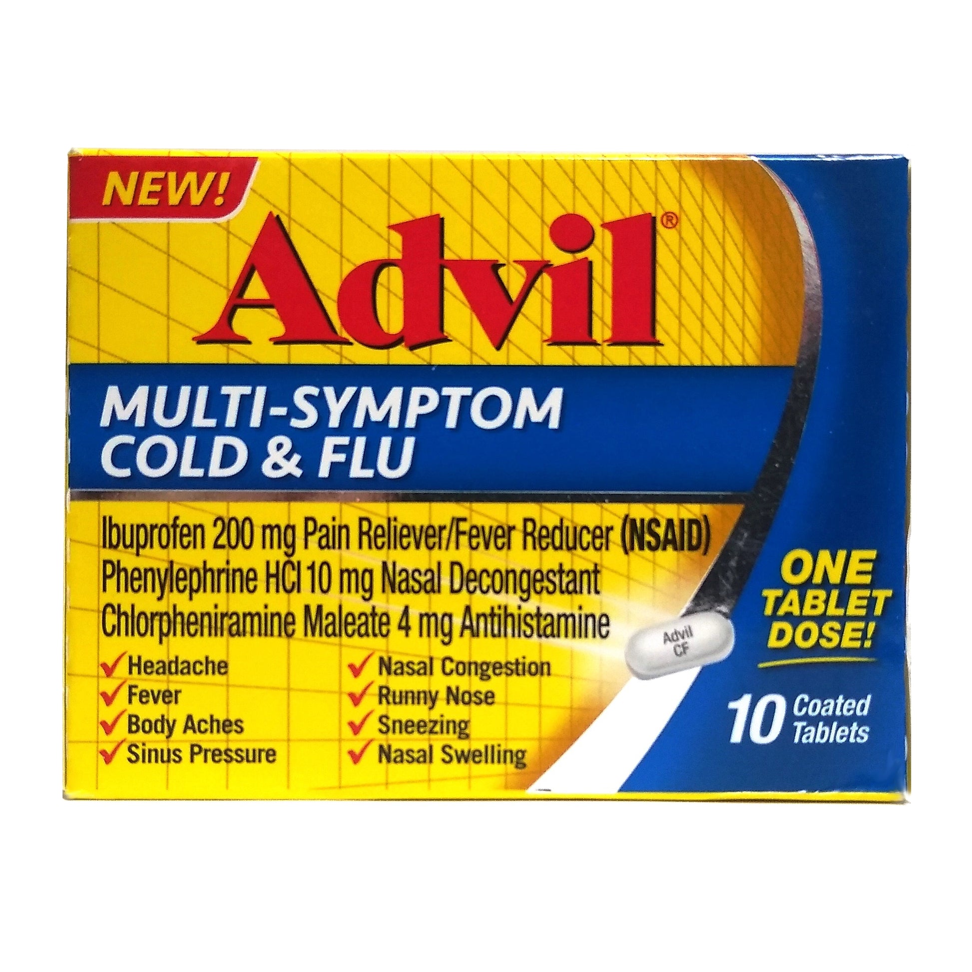Advil Multi-Symptom Cold And Flu, 10 Coated Tablets, 1 Pack Each, By Pfizer Consumer Healthcare