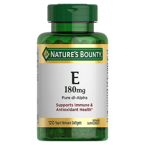 Nature's Bounty E-400 IU Pure DL-Alpha Softgels are a dietary supplement that provides essential vitamin E for antioxidant support. This pack includes 120 softgels, each containing 400 IU of vitamin E, which helps to protect the body from oxidative stress and supports skin and immune health. Perfect for daily use, these softgels are an essential addition to your wellness routine.