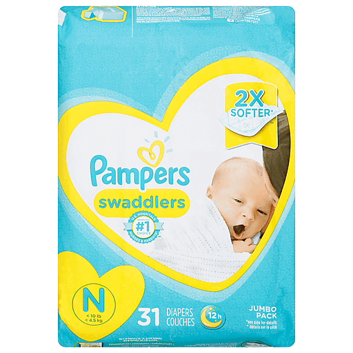 Pampers Swaddlers Size 0 offer gentle and comfortable protection for newborns. The 31x4 pack contains soft and absorbent diapers with a unique liner that pulls wetness and mess away from the baby's skin. Perfect for sensitive skin, they provide up to 12 hours of protection, keeping your baby dry and comfortable.