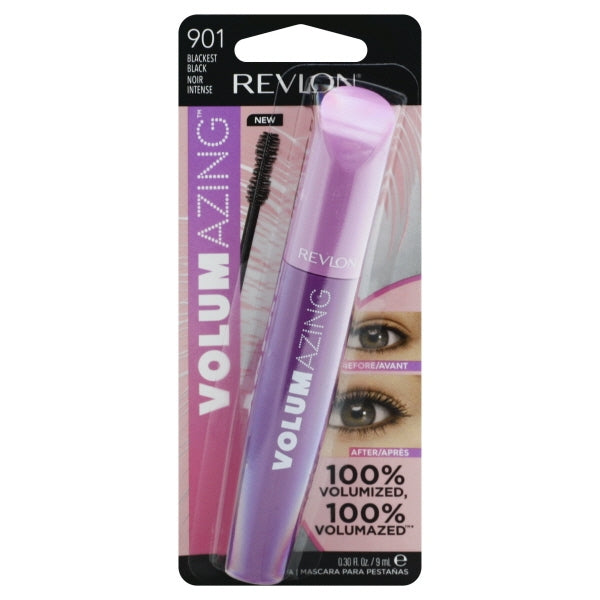 VOLUMAZING MASCARA (CARDED) - NWP BLACKEST BLACK-EACH Revlon Volumazing Mascara in Carded Blackest Black delivers dramatic volume and lift. This mascara's unique brush separates and coats each lash for a bold look. Ideal for achieving a full, voluminous lash effect.