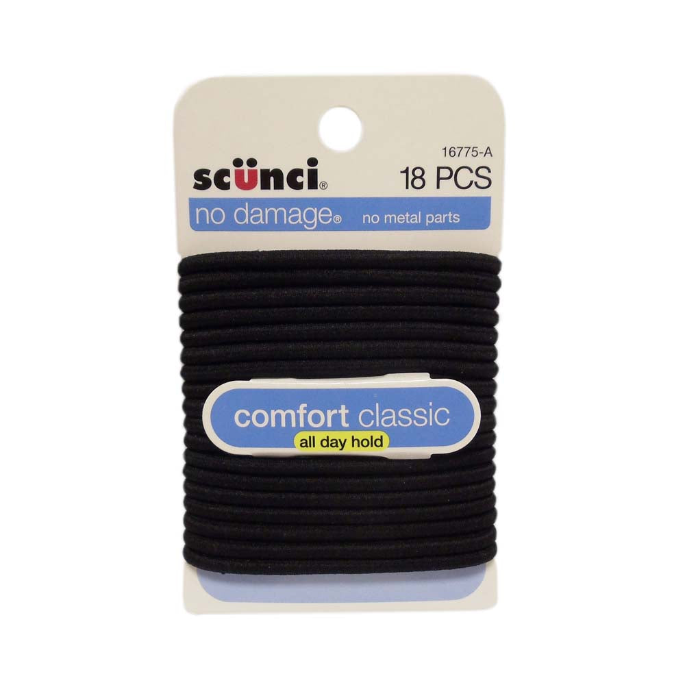 Scunci Black Hair Elastics, 18 Count, Case of 48, By Conair