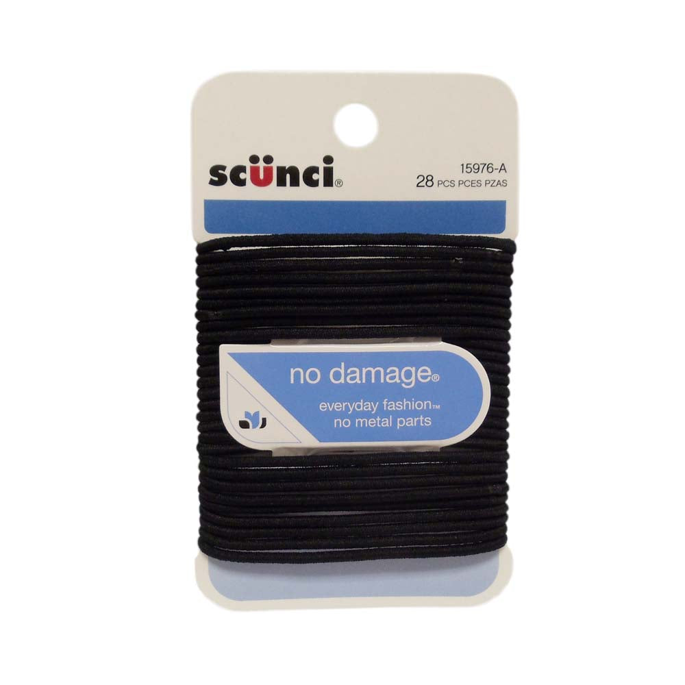 Scunci Black No Damage Elastics, Black, 28 Count, 1 Pack Each, By Conair