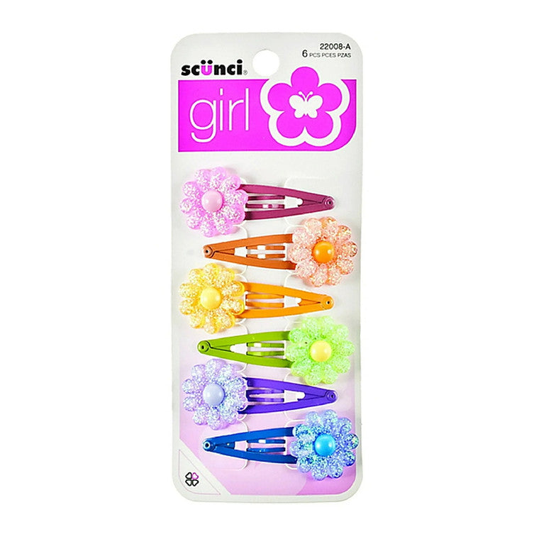 Scunci Clippies with Flowers add a touch of whimsy and style to your hairstyle. These cute and colorful hair clips securely hold sections of hair in place, making them perfect for all hair types. Ideal for everyday wear or special occasions, they provide a fun and playful accessory for any look