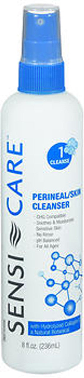 Sensi-Care Perineal/Skin Cleanser (8oz) is a gentle, no-rinse formula designed for sensitive skin. This cleanser helps remove urine, feces, and other contaminants, leaving the skin clean and fresh. It is ideal for use in perineal care and on sensitive skin, providing soothing and moisturizing benefits.