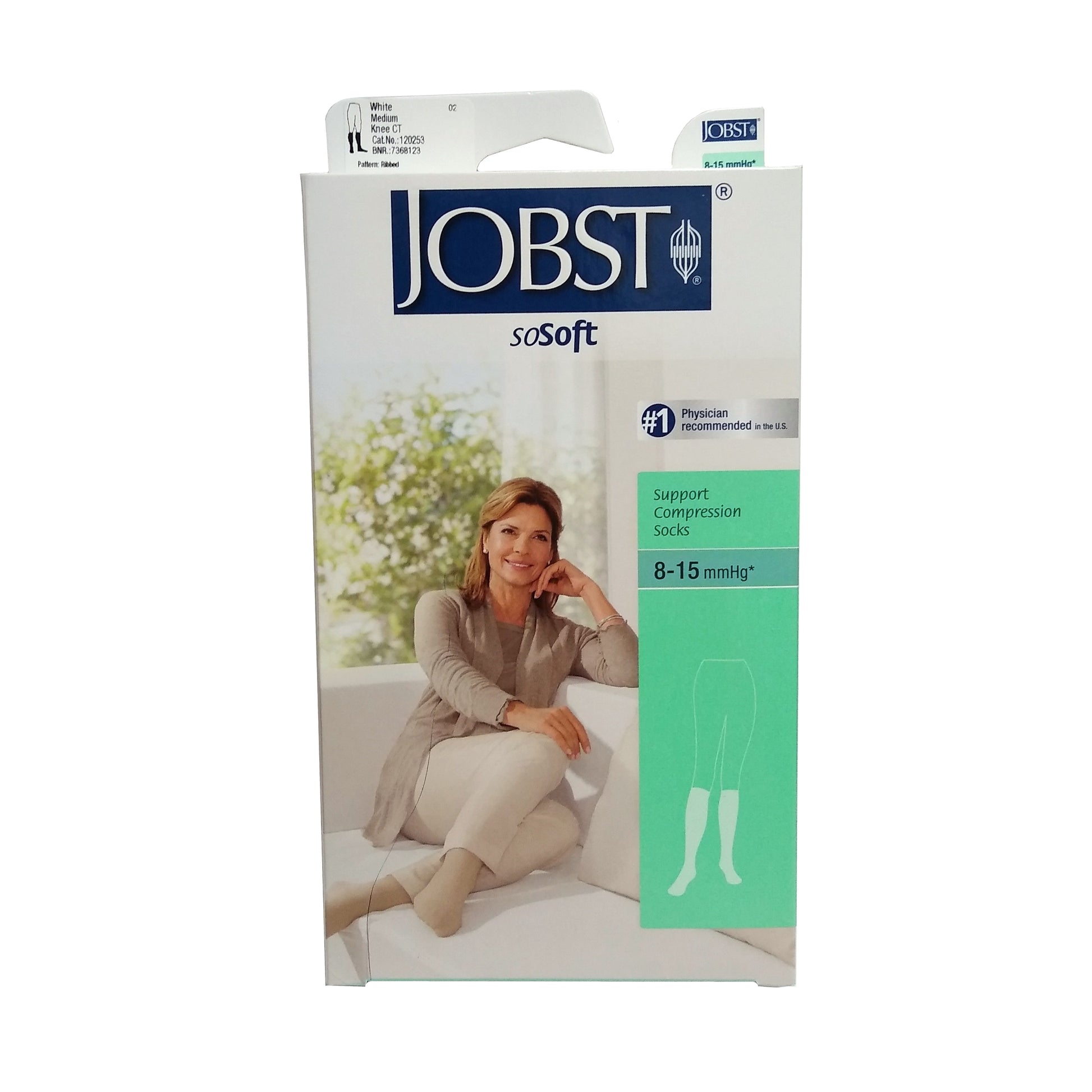 SoSoft Women's Knee High Support Compression Socks, Medium Size, White, 8-15 mmHg, 1 Pair Each