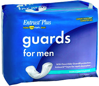 Stay confident and protected with Sunmark Entrust Plus Guards for Men. These thin contour fit guards are designed for light bladder leakage, providing discreet and comfortable protection. With a secure adhesive strip, they stay in place all day, giving you peace of mind and comfort.
