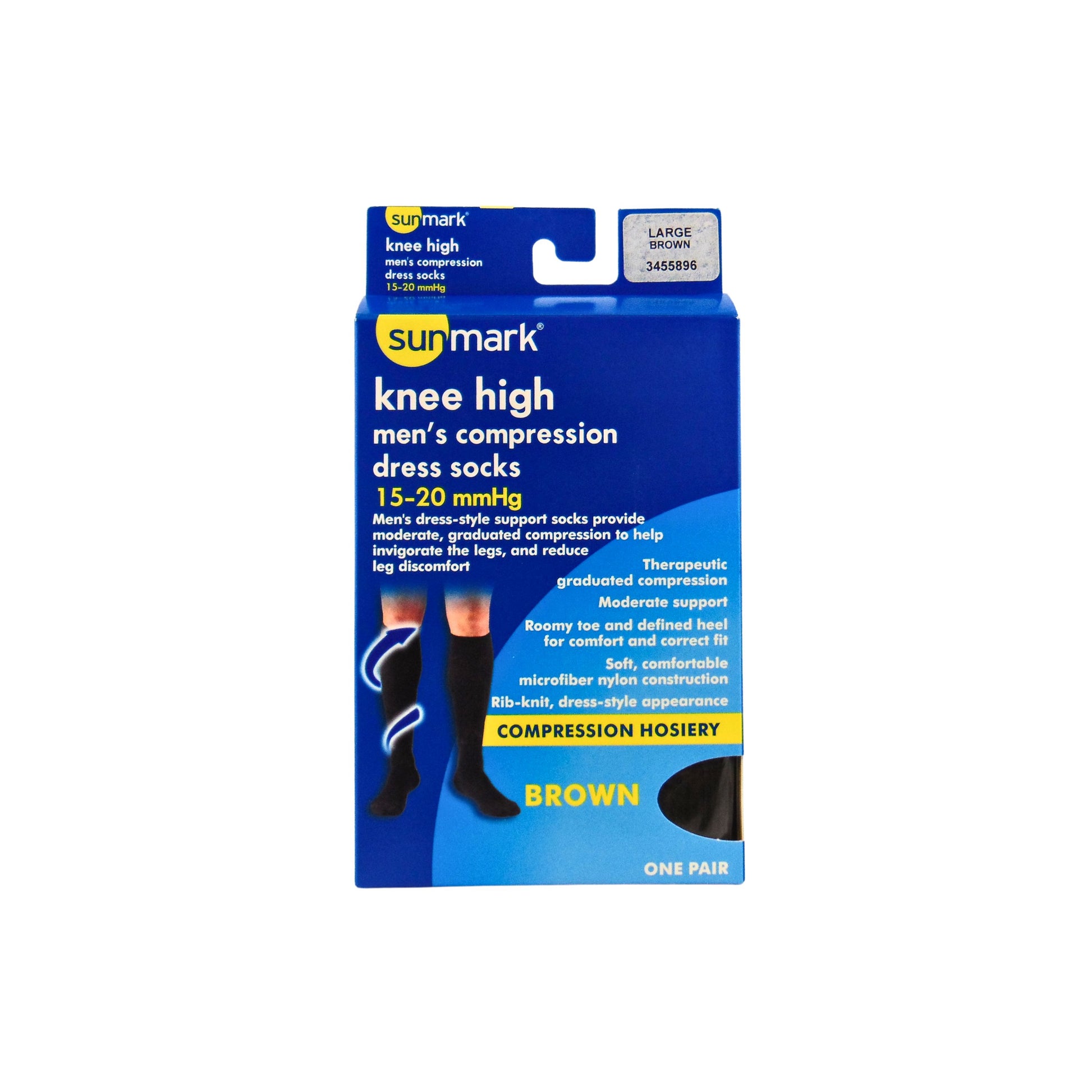 Sunmark Mens Compression Socks 15-20 Large Brown, 1 Each, By Sunmark