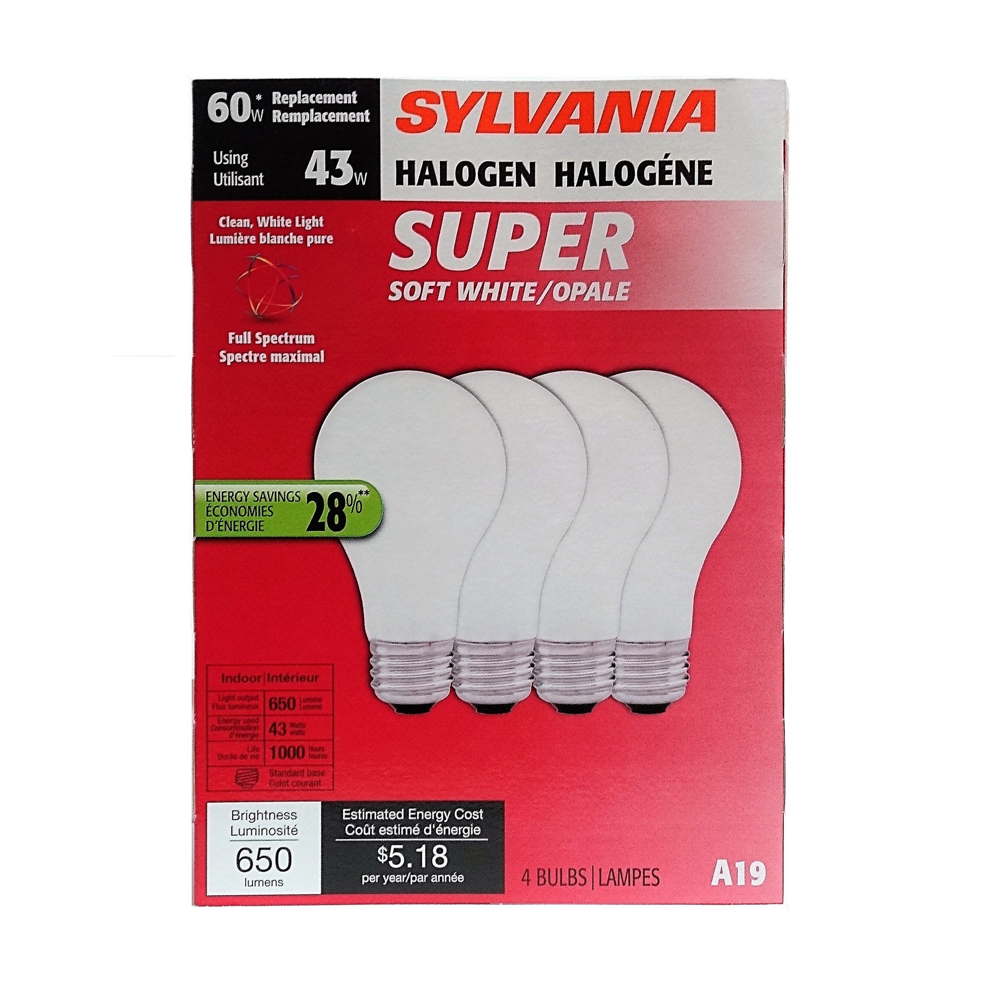 Sylvania 43W Super Soft White Light Bulb, 4 Pack, 1 Each, By Ledvance LLC