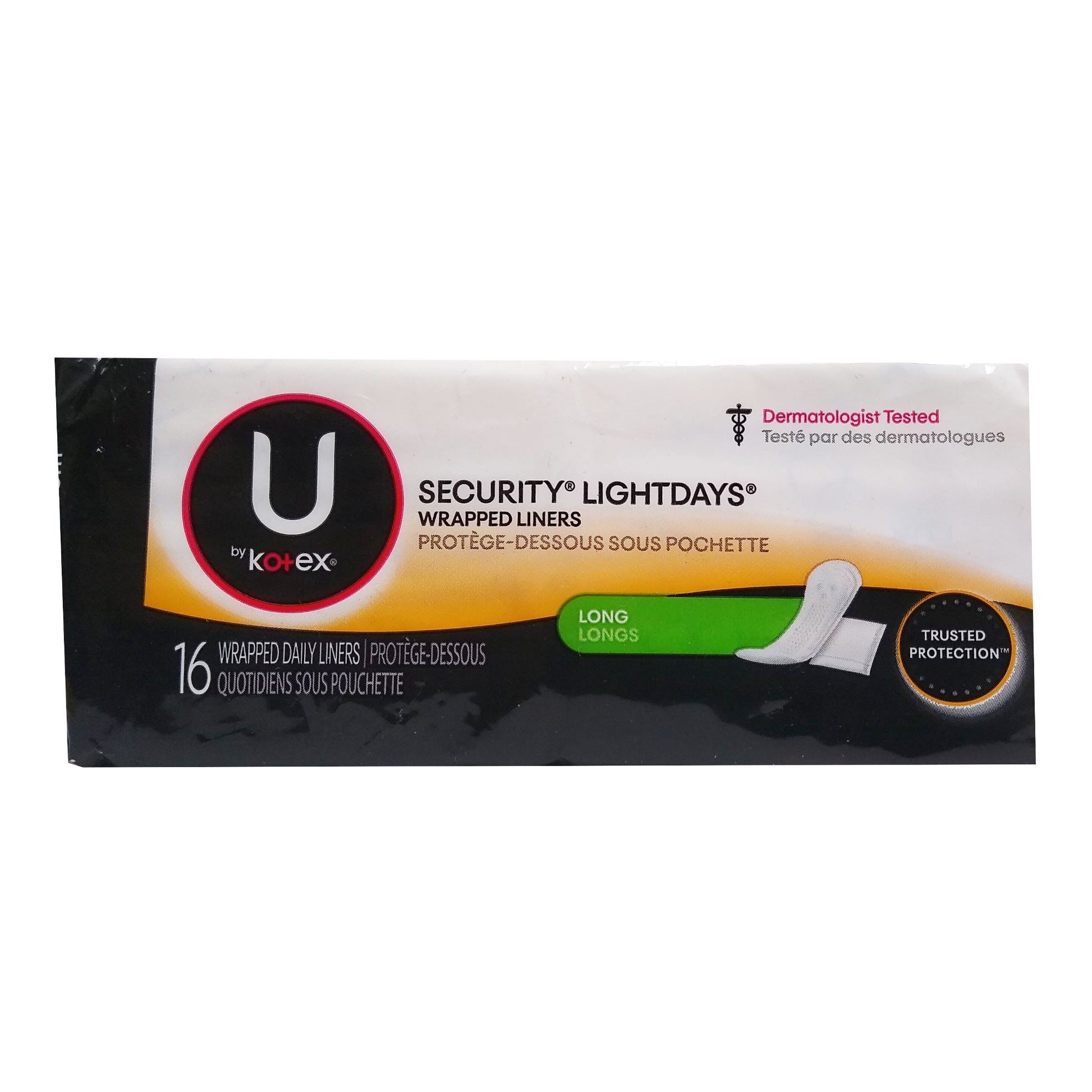 U by Kotex Lightdays Liners Absorbent Long 16 Count, 1 Pack, By Kimberly Clark