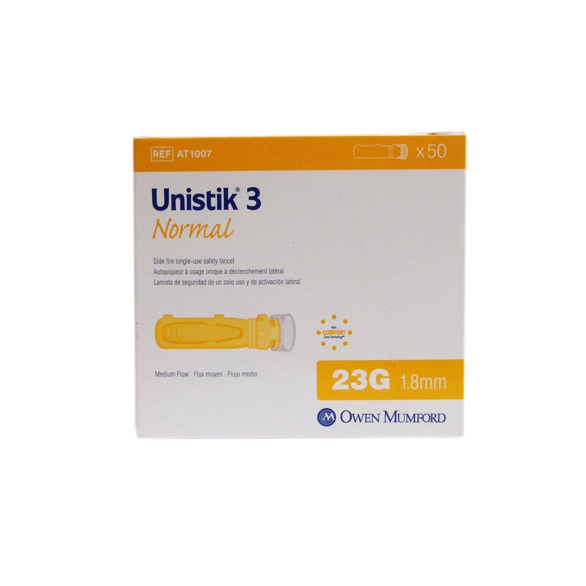 Unistik 3 Normal Safety Lancet 1.8 mm 23 G, 50 Count, 1 Box Each, By Owen Mumford