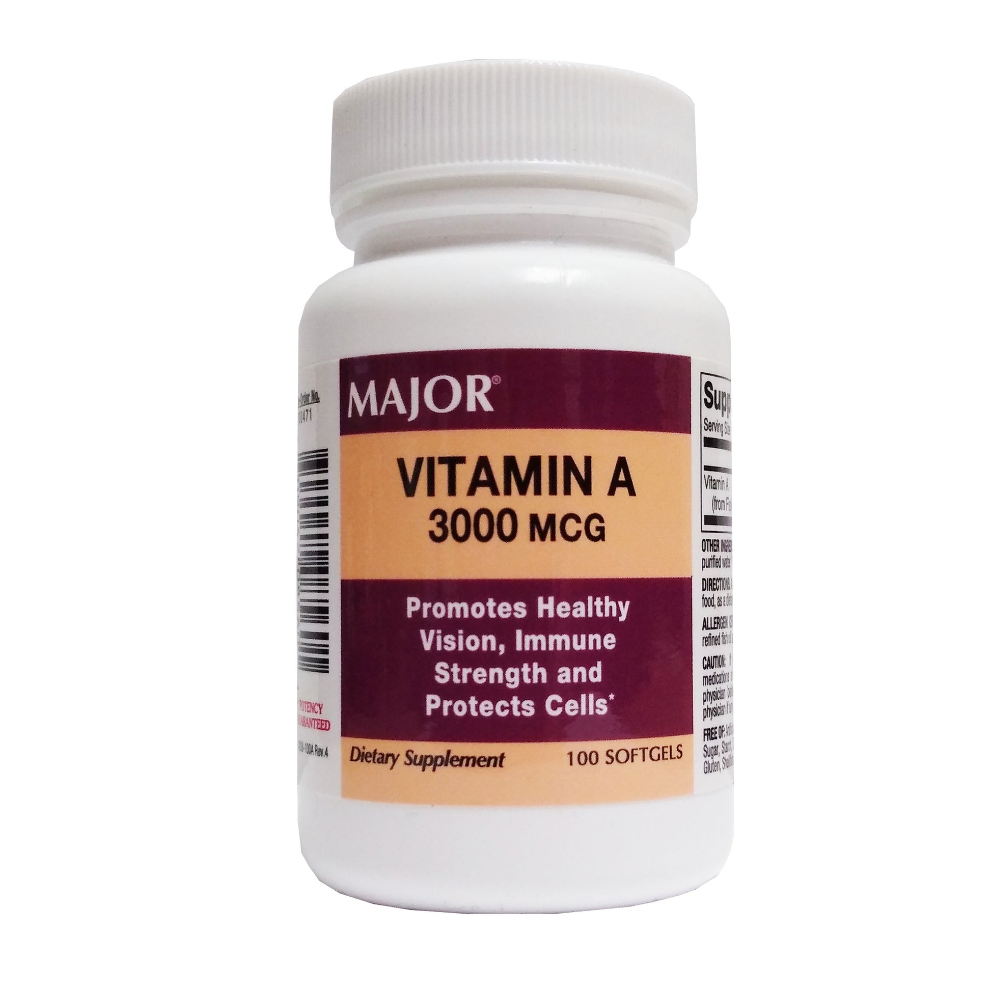 Vitamin A, 3000 MCG, Dietary Supplement, 100 Softgels, 1 Bottle Each, By Major Pharmaceuticals