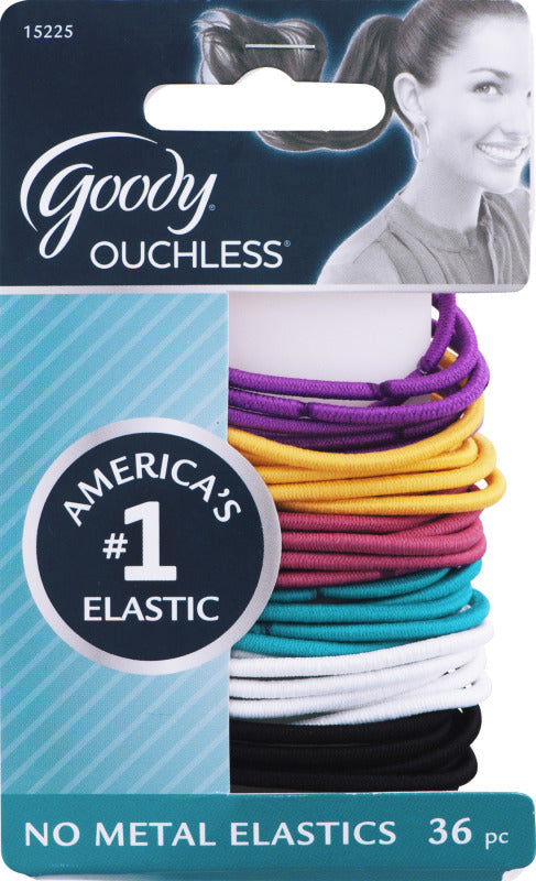 The Goody Women's Ouchless Brooke 2mm Elastics are perfect for creating secure, comfortable hairstyles. This pack includes 36 elastics in a variety of neutral colors, designed to blend seamlessly with your hair. The no-metal design ensures a snag-free experience, making them ideal for all hair types and styles, from ponytails to braids.